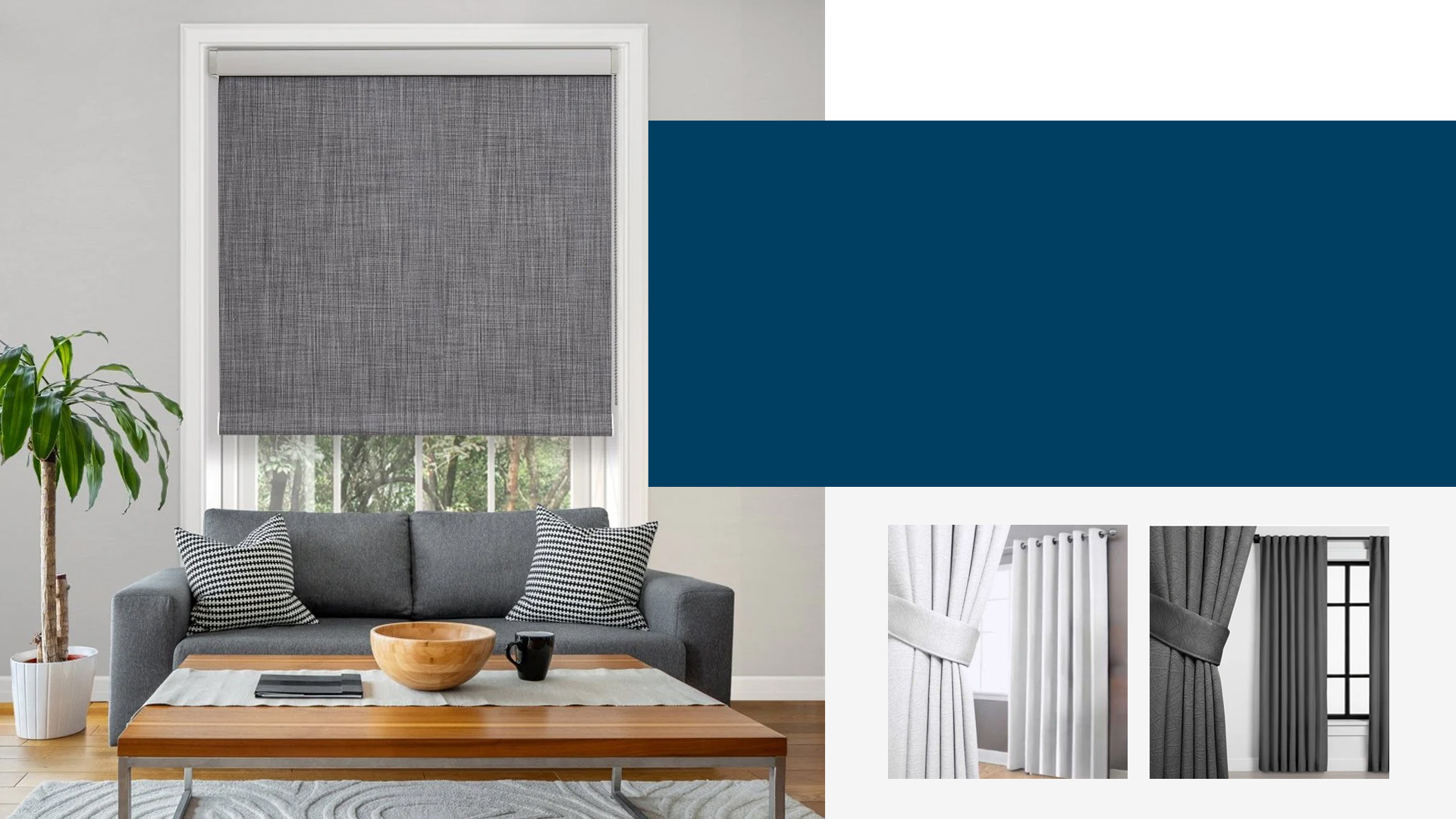 Roller blind, wooden blind, roman blind, dll.